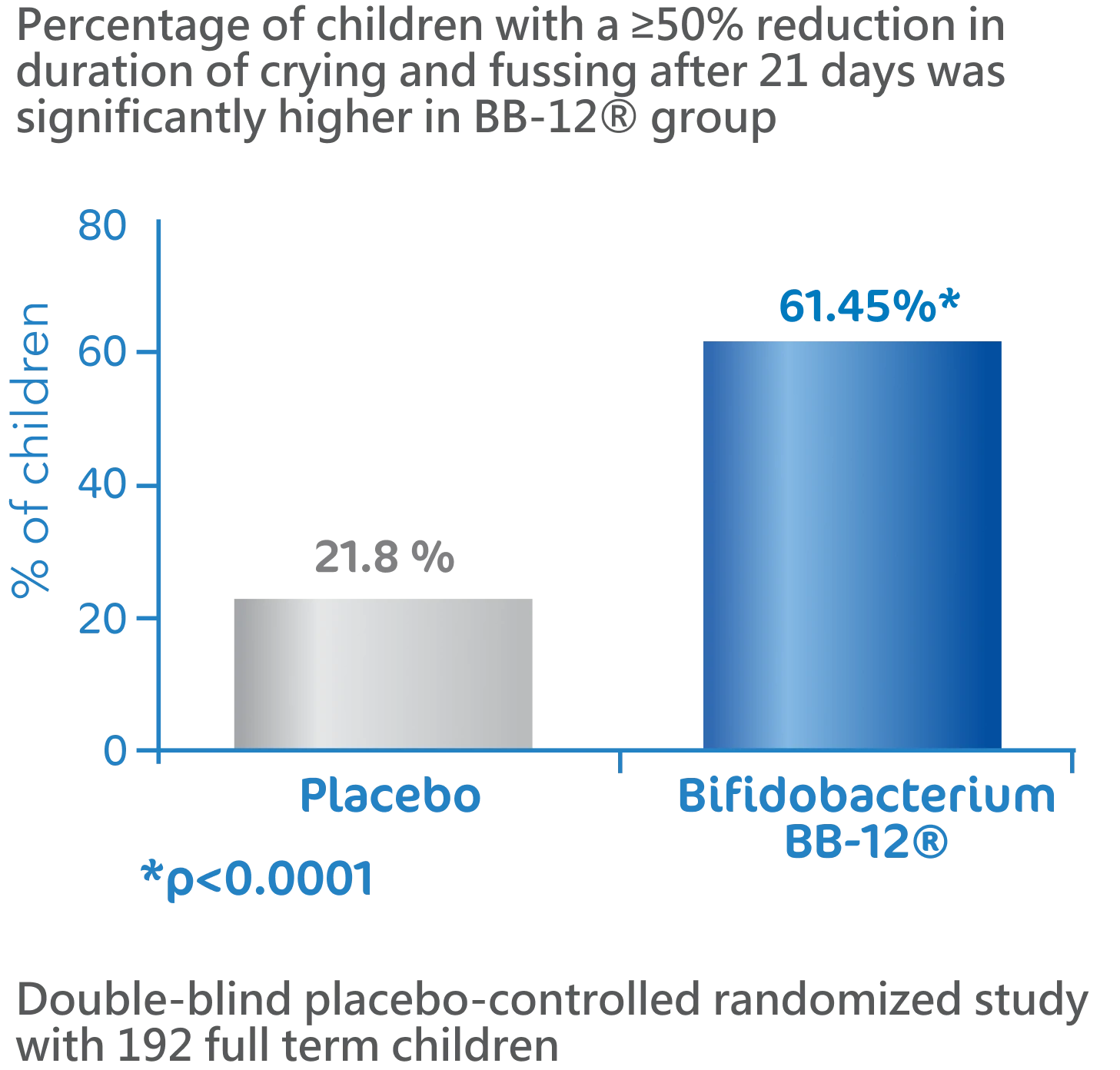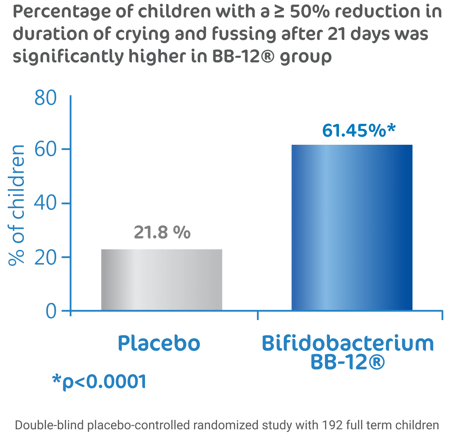 BB-12® is effective in reducing crying and fussing in children diagnosed with colic2