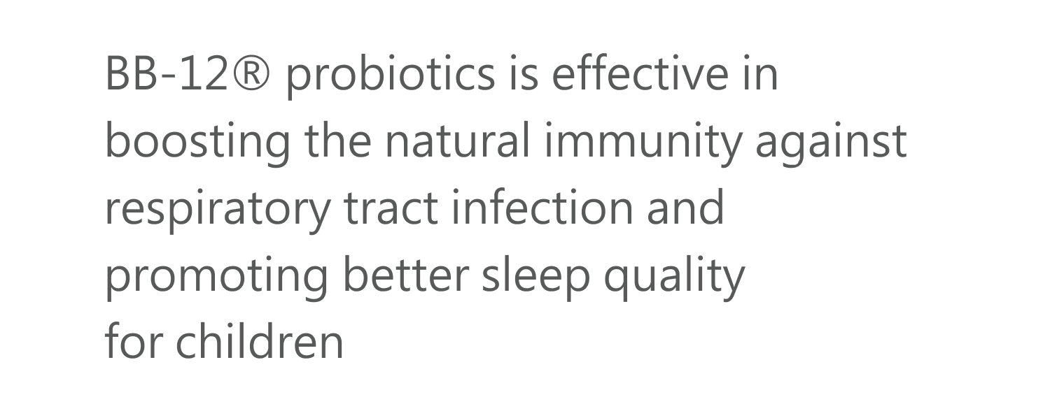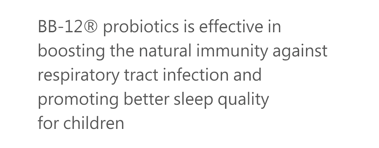 BB-12® probiotics is effective in boosting the natural immunity against respiratory tract infection and promoting better sleep quality for children.